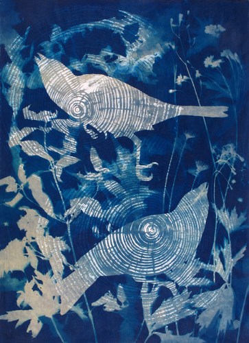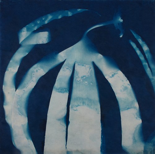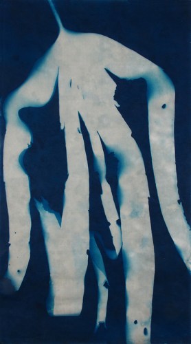I sometimes work with an alternative form of early photography called cyanotype. When used as a method of contact printing, cyanotypes reflect the subject as a cryptic silhouette of itself rather than a visual representation. Combined with the idea of absence and recollection, cyanotypes are my means for capturing what once existed but now is gone by intention or accident.